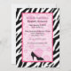 Convite Festa de Moda Trendy Zebra Girly Calçados Rosa