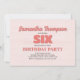 Celebre a sexta festa de aniversário da sua filha com este adorável convite! Apresentando uma tipografia "seis" rosa, um padrão floral fofo, e um simples modelo, este design é perfeito para uma celebração moderna e minimalista. A escrita de caligrafia branca adiciona um encanto lúdico, enquanto as elegantes flores quic criam uma vibração na moda. Personalize este convite divertido e doce hoje para uma comemoração memorável de aniversário!