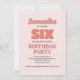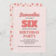 Celebre a sexta festa de aniversário da sua filha com este adorável convite! Apresentando uma tipografia "seis" rosa, um padrão floral fofo, e um simples modelo, este design é perfeito para uma celebração moderna e minimalista. A escrita de caligrafia branca adiciona um encanto lúdico, enquanto as elegantes flores quic criam uma vibração na moda. Personalize este convite divertido e doce hoje para uma comemoração memorável de aniversário!