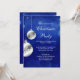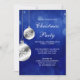 Um convite para festas modernas, com ornamentos prateados em flocos de neve, num fundo azul escuro. Perfeito para uma festa de feriado corporativo, festas de férias de negócios, festas de férias da empresa, arrecadação de fundos e muito mais! Personalize facilmente suas informações de evento. Designs são ilustrações/gráficos impressos em formato plano - NÃO É A FOLHA DE PRATA REAL.