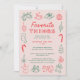 Este convite para festas divertidas apresenta ilustrações de Natal empíricas, desenhadas à mão, em verde vermelho e escuro sobre o fundo de uma rosa claro. A saudação da tipografia moderna diz "Coisas Favoritas". Personalize ainda mais este design, adicionando uma foto e/ou texto adicional ao verso. O olhar é divertido, moderno e festivo! DESIGN TIP: As cores de fundo e texto são personalizáveis usando a ferramenta do editor.