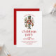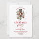 A festa de Natal, tema de Natal, é convidada com o Noz-Cacker de Natal e a tipografia vermelha. Fundo branco.