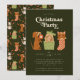 Cartão de convite de festas branco e jante de Natal moderno, com ilustração desenhada à mão de um gato e de um cão no tema das férias. O fundo é verde.