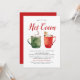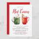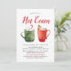 Convites de festas de férias bonitos, com cor d'água verde e cheio vermelho de chocolate quente com canas doces, marshmallows e biscoitos de pão de gengibre. Personalize os convites de festas de cacau quente com os detalhes da sua festa e uma lista de coberturas de chocolate quente.