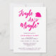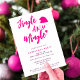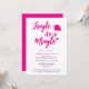 Convite de festas Jingle e Mingle, de Natal moderno, apresentando um roteiro de tipografia de caligrafia, um pouco de coração e um chapéu de Papai Noel em rosa quente de tendências.
