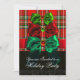 Elegante, sofisticada tartã escocesa nas cores vermelho, verde e branco, damasco floral preto, laço de seda brilhante e pedras preciosas rubi e esmeralda em 3D. Fácil de personalizar com suas iniciais e texto como um anúncio, cartões de lugar, save-the-date, agradecimento, chá de noiva, aniversários, festas, chá de lingerie, ou qualquer outro evento que desejar!