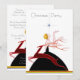 Convites personalizados de celebração de festa de Natal com arte deco antiga de flapper e cervo. Uma bela ilustração art déco antiga com uma flapper glamorosa da era de 1920/1930, com vestido preto elegante, olhando para uma estrela acima dela. Há um elegante cervo vermelho saltitante com chifres em primeiro plano. Convites duplos laterais clássicos, chiques, simples, românticos, femininos, clássicos, antiquados, fofos e caprichosos para festas de Natal. Perfeitos para jantares festivos formais e eventos corporativos e empresariais, bem como celebrações familiares. Todo o texto é totalmente personalizável de acordo com as suas necessidades - muitas fontes para escolher. Esses convites personalizados, vintage e originais, mágicos, bonitos, sofisticados, fashion e únicos são impressos em ambos os lados.
