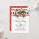 Convide amigos para comemorar a temporada com estes convites para festas de feriado rústicos. Design apresenta uma ilustração aquarela do caminhão de natal vermelho com árvore de natal, casas e texto vermelho. O reverso deste convite é vermelho com flocos de neve com aquarela. Personalize este convite elegante com o seu tipo de evento, fazer-o perfeito para festas de Natal, eventos corporativos, festas de coquetéis de férias.