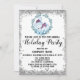 Celebrar a época de férias com este fofinho festivo, confortável urso polar azul floral da Festa de Natal, convite anual para festas de Natal. Os detalhes do partido são escritos em uma tipografia branca e esbranquiçada de escrita negra, com uma luz cintilante prateada brilha na borda e fundo branco. Este convite é perfeito para uma festa de Natal/ Natal/ inverno!