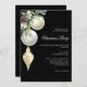 Elegante Convite de festas de Natal para Negócios Convide seus colegas e parceiros para uma celebração festiva com este convite de festas de Natal para negócios na moda. Apresentando um fundo preto moderno e elegante, ele é maravilhosamente decorado com bolas de prata e ouro, verde, e um cone de pinho para um toque de elegância de férias. Personalize o convite com os detalhes do evento para criar um convite sofisticado e memorável para a reunião de Natal da sua empresa.