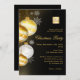 Um convite para um negócio, Festa de Natal da empresa. Fundo preto clássico. Decorado com bolhas de ouro e branco. Personalize e adicione seu logotipo e os detalhes da festa.