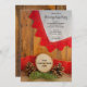 Convide os funcionários, os associados e os membros da equipe para o seu evento de férias anual com o encantador Convite de festas de Natal da Companhia Rustic Pines and Barn Wood. Excelente para um tema de rancho ou festa de celeiro no estilo de fazenda. Esta festa casual, porém elegante, apresenta cones de pinheiro castanho, galhos de pinheiros verdes e uma fatia natural de madeira com madeira marrom e um fundo vintage de lenço vermelho aparado, tudo em burlap.