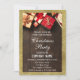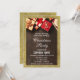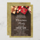 Companhia festiva anual de férias convite de festas de Natal com uma borda brilhante de brilho dourado, presentes vermelhos com arcos e elegante escrevendo branco sobre madeira castanho-escura russa. Este é um feriado perfeito/ Natal/ convite de inverno!