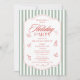 As Elegantes Convidações de Férias da Companhia de Natal da Elegante contêm elementos simples e vermelhos de Natal em um fundo listrado verde e branco com o texto "Festa de Férias" em elegante tipografia de script de caligrafia vermelha. Na moda, tendências e chic para o seu Partido de Feriados corporativo. Criado pelo Evco Studio www.zazzle.com/store/evcostudio