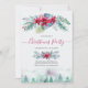 Convite de festas de Natal elegante com design de aquarela. O convite inclui pinheiros florestais, tipografia quic e uma vila floral de inverno com poinsettia, folhagem, bagas, pínus e verde. Toda a formulação é perfeitamente editável. Por favor, navegue na minha loja para coordenar decoração doméstica e presentes.