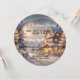 cena de neve com uma casa e árvores em primeiro plano, uma arte de fantasia, uma noite de Natal de inverno nevado
