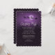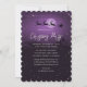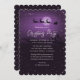 Convite de festas de Natal roxo com uma paisagem de inverno com Papai Noel e renas e estrelas pequenas.