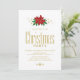 Compartilhe a alegria e convide seus amigos e entes queridos para a sua celebração de Natal com este na moda branco com texto de ouro e um convite de festas de Natal de poinsettia vermelha.