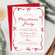 Convide os convidados para a sua celebração de Natal com este festivo convite de festas de Natal. A "Festa de Natal" é escrita num guião manuscrito alegre, com os detalhes do seu evento apresentados abaixo em letras clássicas de serifa. Um quadro de arcos vermelhos desenhados à mão e fitas sobressai contra o fundo branco, criando um design que é brilhante e eterno. Perfeito para festas de Natal familiares, jantas de férias ou reuniões de férias de companhia.