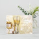 Convite de festa de Natal dourada com taças de champanhe douradas elegantes e presentes embrulhados com fita dourada em um belo fundo bokeh dourado. Este convite de festa de Natal dourado elegante é facilmente personalizado para o seu evento, basta adicionar seus detalhes no estilo de fonte e cor de sua escolha.