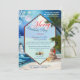 Uma cena de Natal de inverno Azul e uma cena de feriado de praia com uma estrutura geométrica vermelha-verde para o seu cartão de festas de Natal são fáceis de personalizar com a sua redação, fonte, cor da fonte, forma de papel e escolha de doze tipos de papel.