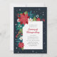 Um convite de festas de Natal colorido com botânicos de inverno desenhados à mão como bagas, flores de poinsettia, folhas e pinheiro. Este convite elegante para festas de férias vem em cores tradicionais de vermelho, verde e lacaio. Todo o texto é editável. Este convite festivo dá o tom para uma encantadora celebração de inverno. Estas ilustrações originais foram desenhadas à mão pela Carmia Jordaan.