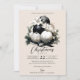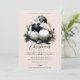 Convite de festas de Natal de marfim bege preto elegante, com decoração de Natal a preto e marfim, flores de marfim, ramos de pinheiro e arco de cebola negra.