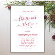 Os Convites de festas de Natal Mínimos e Vermelho e Branco da Caligrafia Moderna são perfeitos para um evento de Natal simples. Apresenta um texto elegante do "Partido de Natal" em um belo tipo de letra de rabo-de-banho suave, escrito à mão, em vermelho e branco. Fácil de personalizar com seu nome e detalhes da festa.