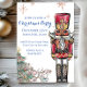 Este convite de Natal ou festas coloridos, elegantes e festivos costume apresenta um tema de conto de fadas Nutcracker. Uma grande imagem de um preguiçoso vestido de vermelho e de ouro colocado à direita. Um belo rei de rato e bailarina de rato são pintados na decoração de baixo numa árvore de Natal. O brilho do ouro falso acentua as imagens ilustradas e os flocos de neve de ouro rosa caem do céu.