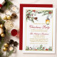 Placa de Convite de festas Floral de Pinheiro de Aquarela Moderna, Holly Berries e Poinsettia - Script Vermelho, Quadro Dourado