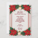 As flores vermelhas escuras de poinsettia com folhas verdes profundas são colocadas nos cantos, com velas centradas no topo e no fundo da armação. Bonita e festiva, e perfeita para seus convites para festas de férias!