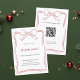 Para uma festa de Natal com familiares e amigos. Decorado com um simples arco vermelho desenhado à mão. Personalize e adicione os detalhes. Festa de Natal de coração. Código QR para o seu site para RSVP e detalhes do partido.