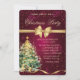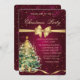 Um convite elegante para festas de Natal com árvore de Natal e arco de ouro em fundo vermelho. Estes belos convites de Natal são perfeitos para convites de festas de janto de Natal, convites para troca de presentes de Natal, angariadores de fundos de Natal, convites para bolas de férias e outros eventos realizados durante o mês de dezembro. Use apenas os campos modelo para adicionar suas próprias informações de evento.