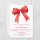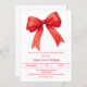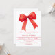 Para uma festa de Natal com familiares e amigos. Uma carta elegante e simples decorada com um grande arco vermelho. Fundo branco. Personalize e adicione os detalhes.