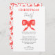 Um convite de festas de Natal simples e na moda moderno, preto e vermelho, arco. Um design de Natal festivo perfeito para a época de Natal. Convide seus convidados para sua festa de Natal com este convite de festas de Natal arco vermelho do Natal contemporâneo. Simplesmente personalize a festa negra de Natal, convide com seus detalhes e torne-a sua!
