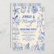 Envie a alegria com convites de festas de Natal desenhados à mão contra um pano de fundo de creme na moda e ilustrações festivas de rabisco azul. O modelo de texto personalizável e unido facilita a adição do seu próprio toque. Personalize sua reunião de férias hoje.