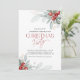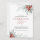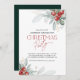 Convite de festas de Natal do escritório elegante com verde e bagas de inverno. O design é acentuado com o texto de estilo manuscrito de tendência branca.