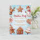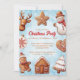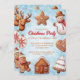 Comemore em estilo com este convite de festas de biscoitos giros. Perfeito para decorar seu Natal ou festa de férias. Ilustrações cheias de aquarelas com figuras de biscoitos de pão de gengibre (uma árvore de Natal, homem com chapéu, boneco de neve, estrela, coração, renas, casa e bola de Natal) em um fundo azul e branco com flocos de neve. Brincadeira e encantadora, é a maneira perfeita de dar o tom para uma celebração divertida e desejar aos seus entes queridos um Feliz Natal.