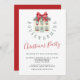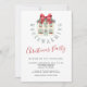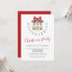 Convite de festas de inverno para o aquecimento doméstico no estilo da tipografia moderna, com uma pequena casa desenhada à mão com um arco de fita vermelha. +++++++ Personalize-o com seus detalhes! ++++++ Adequado para festas de inverno de aquecimento doméstico - nova casa, nova cabana das montanhas, cabana do país.