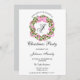 Convite Festa de Natal do Janto Monogramo Pink Ribbon Wrea