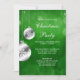 Um convite de festas de Natal moderno, com ornamentos de prata em flocos de neve, em um fundo de bokeh verde. Perfeito para uma festa de feriado corporativo, festas de férias de negócios, festas de férias da empresa, arrecadação de fundos e muito mais! Personalize facilmente suas informações de evento. Designs são ilustrações/gráficos impressos em formato plano - NÃO É A FOLHA DE PRATA REAL.