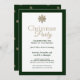 Convite Festa de Natal Dourada com Neve Verde Elegante