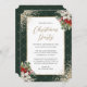 Este elegante convite de festas de Natal verde e dourado com brilho dourado, poinsettia branca, sagrada com bagas vermelhas e verde é perfeito para festas de Natal, reuniões de férias, eventos empresariais, festas de cocktail de férias e muito mais. Personalize facilmente este convite com os detalhes do seu partido.