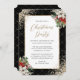 Este elegante convite de festas de Natal preto e dourado, com brilho dourado, poinsettia branca, Holly com bagas vermelhas e verde é perfeito para festas de Natal, reuniões de férias, eventos empresariais, festas de cocktail de férias e muito mais. Personalize facilmente este convite com os detalhes do seu partido.