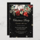 Convite de festas negro de Natal perfeito para festas de Natal, reuniões de férias, eventos corporativos, festas de coquetéis de férias e muito mais. Personalize facilmente este convite preto com poinsettia branca, sagrada com bagas vermelhas, ramos de primavera, flocos de neve e estrelas com os detalhes do seu partido.