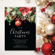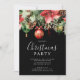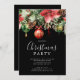 Festa moderna de férias elegância, com uma bela poinsettia e enfeites vermelhos e verdes em fundo preto.