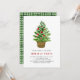 Convide familiares e amigos para a sua festa de férias com este convite personalizável para festas de feriado. Apresenta uma árvore de Natal festiva, aquarela, com ornamentos vermelhos num cesto mais vestido e um padrão de gingham verde. Personalize adicionando seus detalhes. Este convite da árvore de Natal é totalmente editável para qualquer evento. Itens correspondentes estão disponíveis.