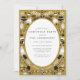 Celebre a temporada com este convite de festas festivo de Natal preto e ouro, com decorações modernas de férias como ornamentos, árvores e sinos. Este convite é perfeito para as reuniões de na moda, estabelecendo o tom para uma celebração de inverno chique.