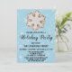 Celebre o feriado com este convite festivo de festas de neve de Natal floco de gengibre de biscoito de gengibre. Os detalhes da festa são escritos em uma tipografia branca e esbranquiçada com um fundo azul claro com feixes de neve branca em queda. Este convite é perfeito para uma festa de Natal/ Natal/ inverno!