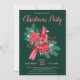 Este design de Natal apresenta a cor da água vermelha de aves cardeais e flores de poinsettia em um arranjo com agulhas de pínus, bagas vermelhas, florais vermelhos e verduras de inverno contra fundo verde-escuro. Você pode personalizar todos os detalhes neste convite. No verso do convite está um padrão de poinsettia em um fundo verde escuro. Veja toda a coleção correspondente.